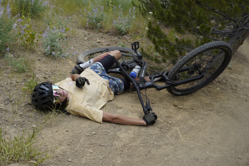 Yes, it’s true, most heroes have a weak link and the same is true for our hero. Jeff’s near demise all came about from his deep love of beautiful flowers. As he rounded one of the final curves he couldn’t help but admire the “delicate beauty of the purple wildflowers,” he explained. The wild lupines definitely have a hypnotic allure but it’s extremely rare for an adrenaline junkie to manifest such passionate admiration. Then again, Jeff is not your everyday adventure man. So just like that, as Jeff listened to the wildflower siren song at the very end of the trail, his bike couldn’t forgive such grave inattention and it slide out from under him and off of the trail. Fortunately, he avoided damaging a nearby pine tree (truly unexplainable given how fast he was traveling), and as you can see in the photo, just barely avoided damaging his favorite flower. Even though he didn’t hurt the flower Jeff says this kind of incident shows limits of enjoyment. “I could enjoy the trail, or I could enjoy the flowers but I guess asking for both at the same time was just too much!” Fellow stander byer, Tony Petrone, noted that, “In crazy sports like mountain biking, taking time to smell the roses just shouldn’t be taken literally. Or at least wait until the ride is done man.” Even though it was a close call, Jeff says he’ll be back on the trails next week but is considering options that may help him bridal his floral love. He’s open to input, feel free to email him any suggestions at funflowerlovingmountainbiker@555.com.